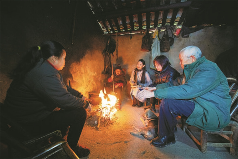 ▲2月16日,在鼎城區(qū)草坪鎮(zhèn)楓林口村,杜美霜(右三)入戶與當(dāng)?shù)卮迕窠涣鳌?/p>