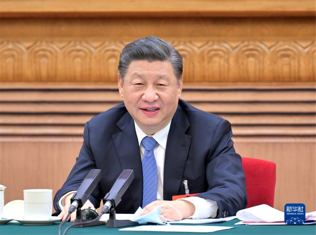 3月5日,中共中央總書記、國家主席、中央軍委主席習近平參加十三屆全國人大五次會議內(nèi)蒙古代表團的審議。新華社記者 李濤 攝