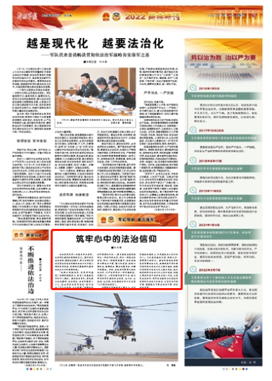 法治素養(yǎng)是軍人的基本職業(yè)素養(yǎng),也是部隊建設的重要軟實力。提升官兵法治素養(yǎng)、提高法治能力,努力在部隊形成自覺運用法治思維和法治方式開展工作的良好風尚,是新時代提高部隊建設法治化水平的重要體現。