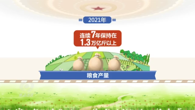 2020年下半年,經(jīng)過各方一年多的努力,一個(gè)萬畝高標(biāo)準(zhǔn)農(nóng)田示范區(qū)終于建成了。如今,大黃村以及周邊鄉(xiāng)鎮(zhèn)農(nóng)田都實(shí)現(xiàn)了規(guī)?;a(chǎn),小麥由過去的畝產(chǎn)七八百斤提高到一千三百多斤。從全國(guó)來看,2021年,我國(guó)繼續(xù)守住18億畝耕地紅線,新建高標(biāo)準(zhǔn)農(nóng)田超過1億畝,糧食產(chǎn)量連續(xù)7年保持在1.3萬億斤以上。