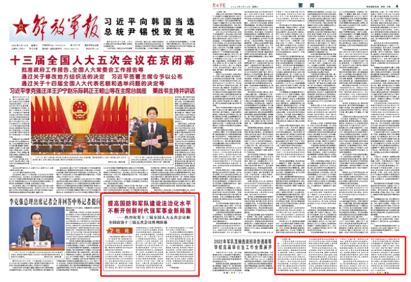 在萬物復(fù)蘇、催人奮進(jìn)的春天里,十三屆全國(guó)人大五次會(huì)議和全國(guó)政協(xié)十三屆五次會(huì)議不負(fù)重托、不辱使命,完成預(yù)定的各項(xiàng)議程,相繼勝利閉幕。解放軍和武警部隊(duì)官兵對(duì)會(huì)議的圓滿成功表示熱烈祝賀!
