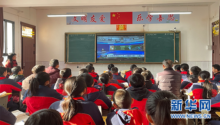 鄖西縣學(xué)生觀看“天宮課堂”。新華網(wǎng)發(fā)