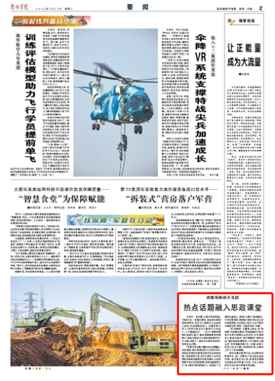 “把青年官兵感興趣的熱點(diǎn)話題融入思政課堂,提升授課的吸引力和針對(duì)性,是推動(dòng)思想政治教育走深走實(shí)的有效舉措?!痹搱F(tuán)領(lǐng)導(dǎo)介紹,他們認(rèn)真學(xué)習(xí)全軍思想政治教育創(chuàng)新集訓(xùn)的相關(guān)精神,主動(dòng)把準(zhǔn)青年官兵的思想脈搏,積極創(chuàng)新教育方式,努力激發(fā)思政課堂活力。該團(tuán)在廣泛調(diào)研的基礎(chǔ)上,探索“眾籌式”教育模式,引導(dǎo)思想活躍、授課能力強(qiáng)的官兵自主設(shè)計(jì)教育課堂,先后推出4批次40余節(jié)課作為教育自選“菜單”,供基層官兵“點(diǎn)餐”。