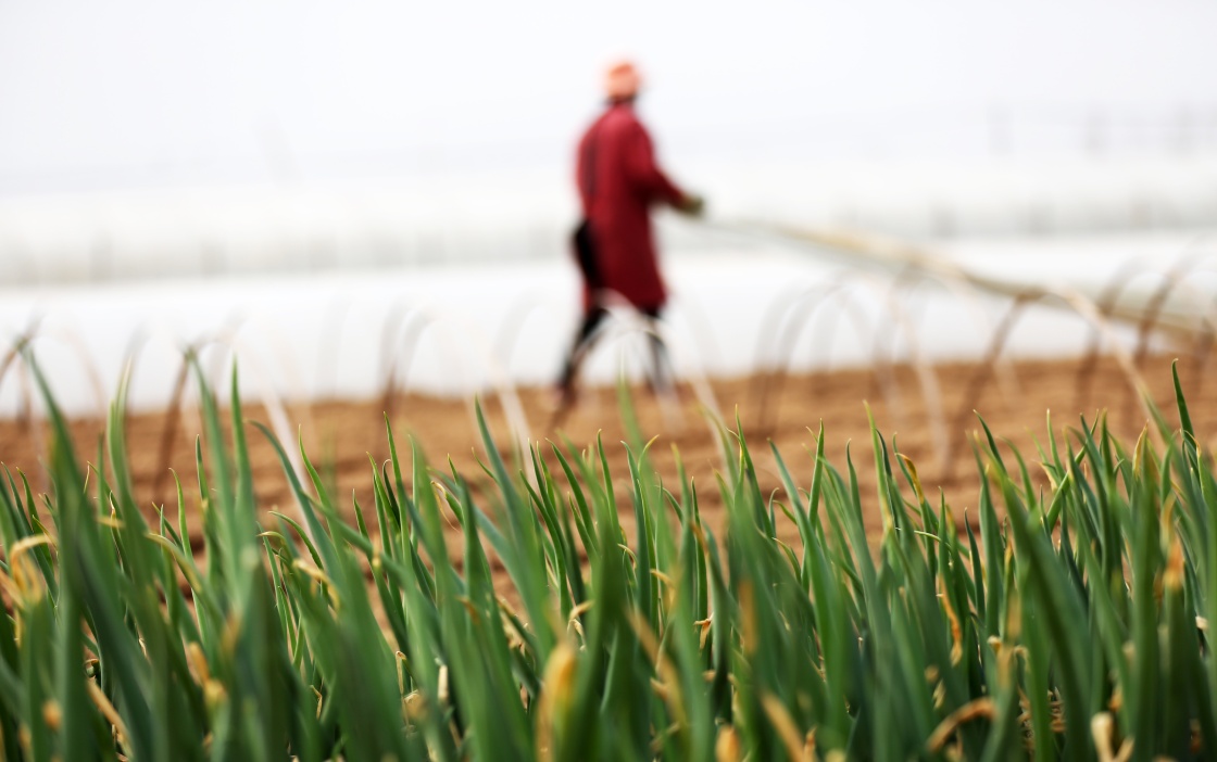 3月10日,山東省臨沂市郯城縣郯城街道農(nóng)民在田間勞作。新華社發(fā)(張春雷攝)