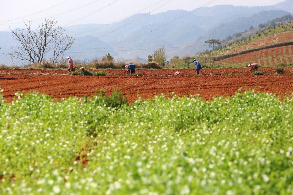 3月10日,在云南省紅河哈尼族彝族自治州個(gè)舊市老廠鎮(zhèn)羊壩底村,農(nóng)民在生姜地里勞作。新華社發(fā)(張洪科攝)
