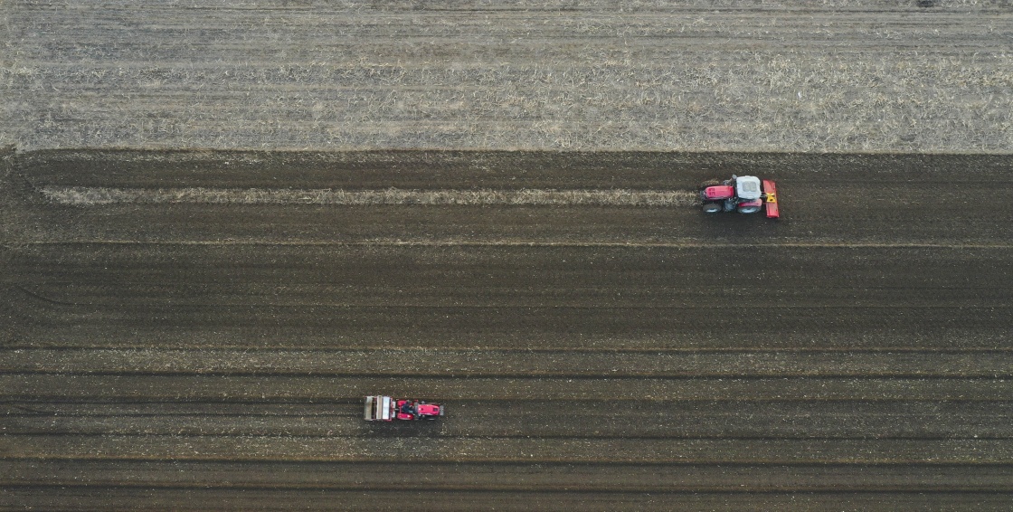 3月10日,河北省遵化市東新莊鎮(zhèn)西梁子河村的農(nóng)民駕駛農(nóng)機(jī)在田間耕作(無人機(jī)照片)。新華社發(fā)(劉滿倉 攝)