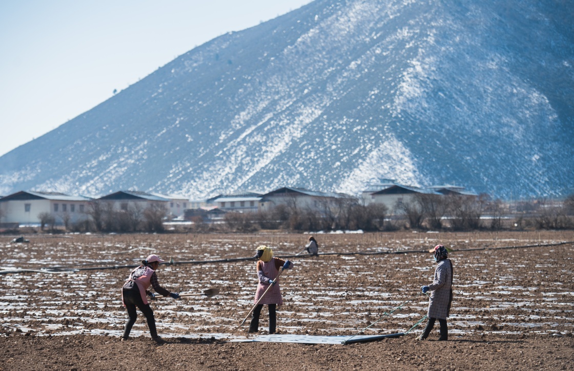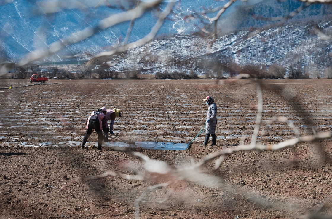 3月10日,云南省迪慶藏族自治州香格里拉市建塘鎮(zhèn)的農(nóng)民在田間勞作。新華社記者 王冠森 攝