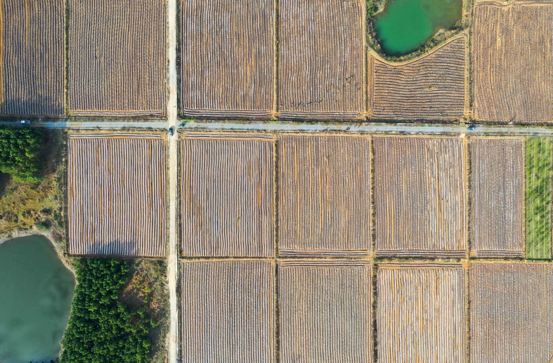 3月9日,廣西南寧市西鄉(xiāng)塘區(qū)石埠街道下靈村村民在種植蔬菜(無人機(jī)照片)。新華社發(fā)(喻湘泉 攝)