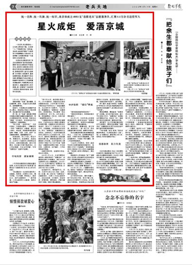 2020年9月16日,北京市朝陽區(qū)退役軍人事務(wù)局舉行“首都老兵”志愿服務(wù)品牌工作部署會,該區(qū)6600余名退役軍人加入志愿服務(wù)隊;2021年7月15日,北京市通州區(qū)“首都老兵”志愿服務(wù)隊授旗儀式舉行,“若有戰(zhàn),召必回”的口號久久回響……
