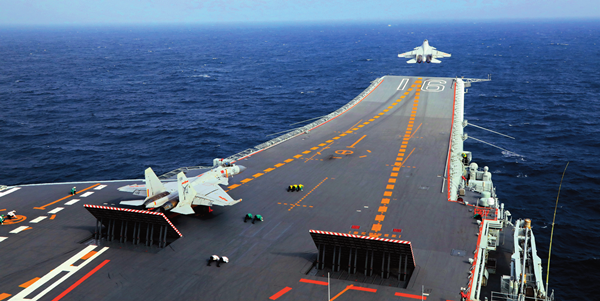 殲-15艦載戰(zhàn)斗機(jī)從遼寧艦上滑躍起飛(資料照片) 劉旭攝 / 《瞭望》新聞周刊