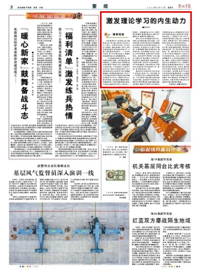 “馬克思主義并沒有結(jié)束真理,而是開辟了通向真理的道路?!秉h的理論創(chuàng)新每發(fā)展一步,軍隊的理論武裝就跟進(jìn)一步。激發(fā)理論學(xué)習(xí)的內(nèi)生動力,除了內(nèi)在的興趣愛好外,還離不開外在的剛性約束。比如,發(fā)揮考核的指揮棒作用,以實際成效檢驗學(xué)習(xí)成果。衡量一名領(lǐng)導(dǎo)干部學(xué)習(xí)創(chuàng)新理論是否扎實,既要看學(xué)了多少,更要看干得怎樣;既要看思想轉(zhuǎn)變有多大,更要看實際表現(xiàn)怎么樣。再比如,健全理論學(xué)習(xí)制度、堅持把改進(jìn)學(xué)風(fēng)納入部隊風(fēng)氣建設(shè)一體部署、把學(xué)習(xí)成效作為評先評優(yōu)的重要參考等,從而激勵各級領(lǐng)導(dǎo)干部帶頭深學(xué)深悟、帶頭宣講輔導(dǎo)、帶頭調(diào)查研究、帶頭搞好學(xué)習(xí)成果轉(zhuǎn)化,不斷在新時代新征程上創(chuàng)造新的業(yè)績、鑄就新的輝煌。