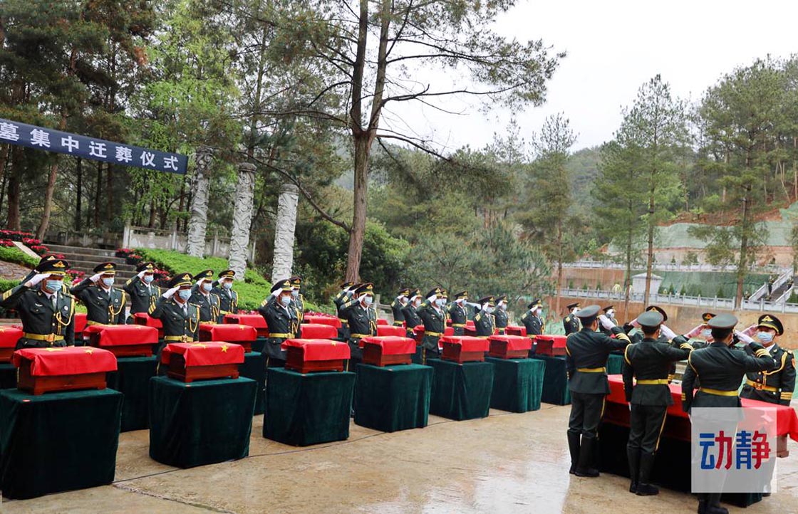 隨后,33名禮賓踏著整齊的步伐將烈士棺槨安放到位、封蓋安葬。參加活動人員向烈士敬獻鮮花,告慰先烈,寄托哀思。
