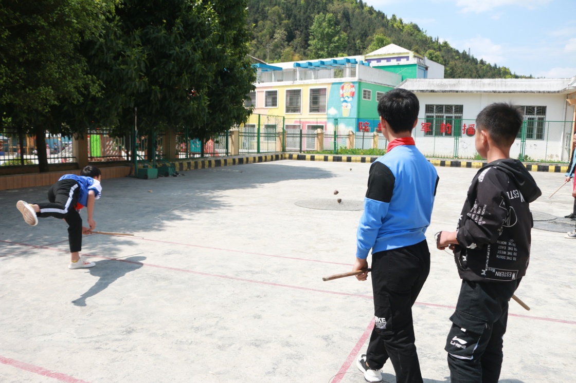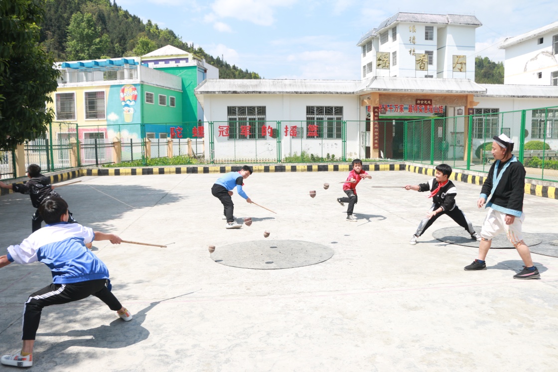 瑤山民族小學(xué)的學(xué)生在練習(xí)競(jìng)技陀螺(4月6日攝)。新華社記者 齊健 攝
