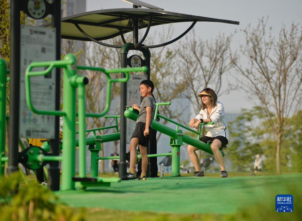 4月6日,市民在成都交子公園內(nèi)游玩。新華社記者劉坤攝