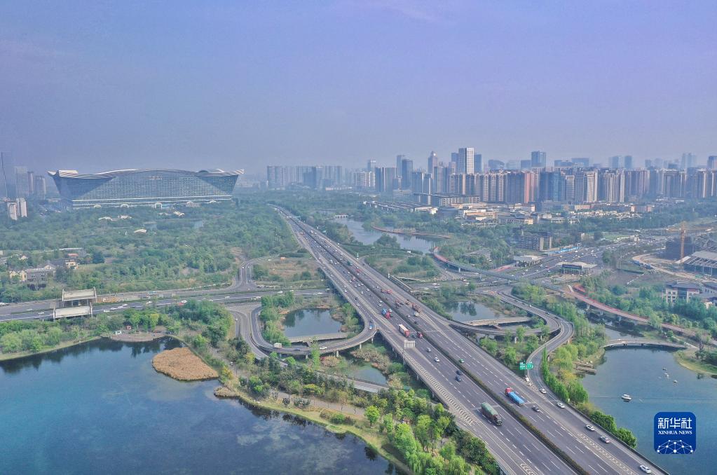 成都錦城湖和錦城公園。新華社記者劉坤攝