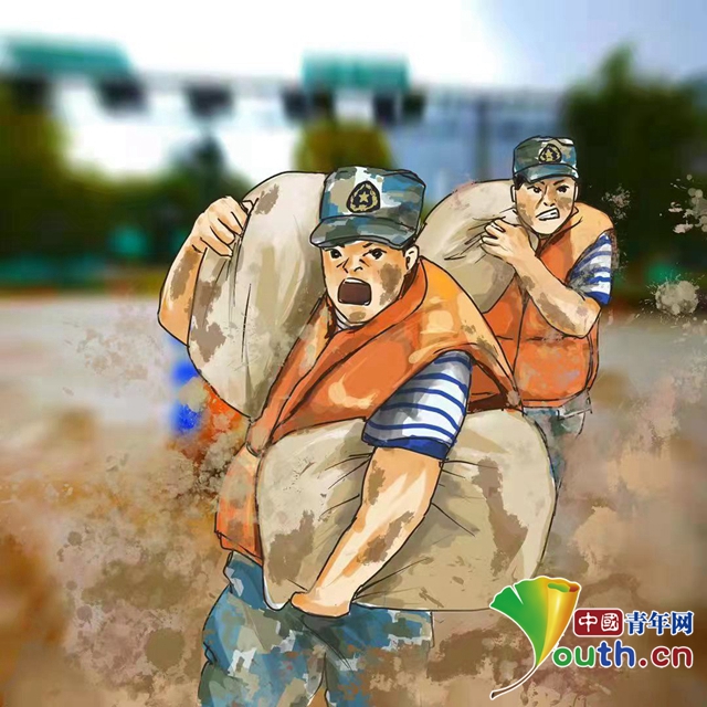 爭先樣:見紅旗就扛是新時代青年軍人的優(yōu)良風(fēng)采。