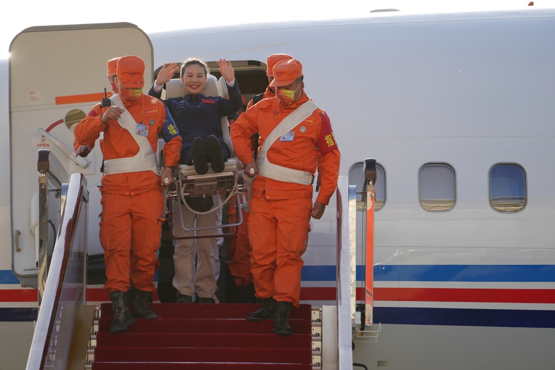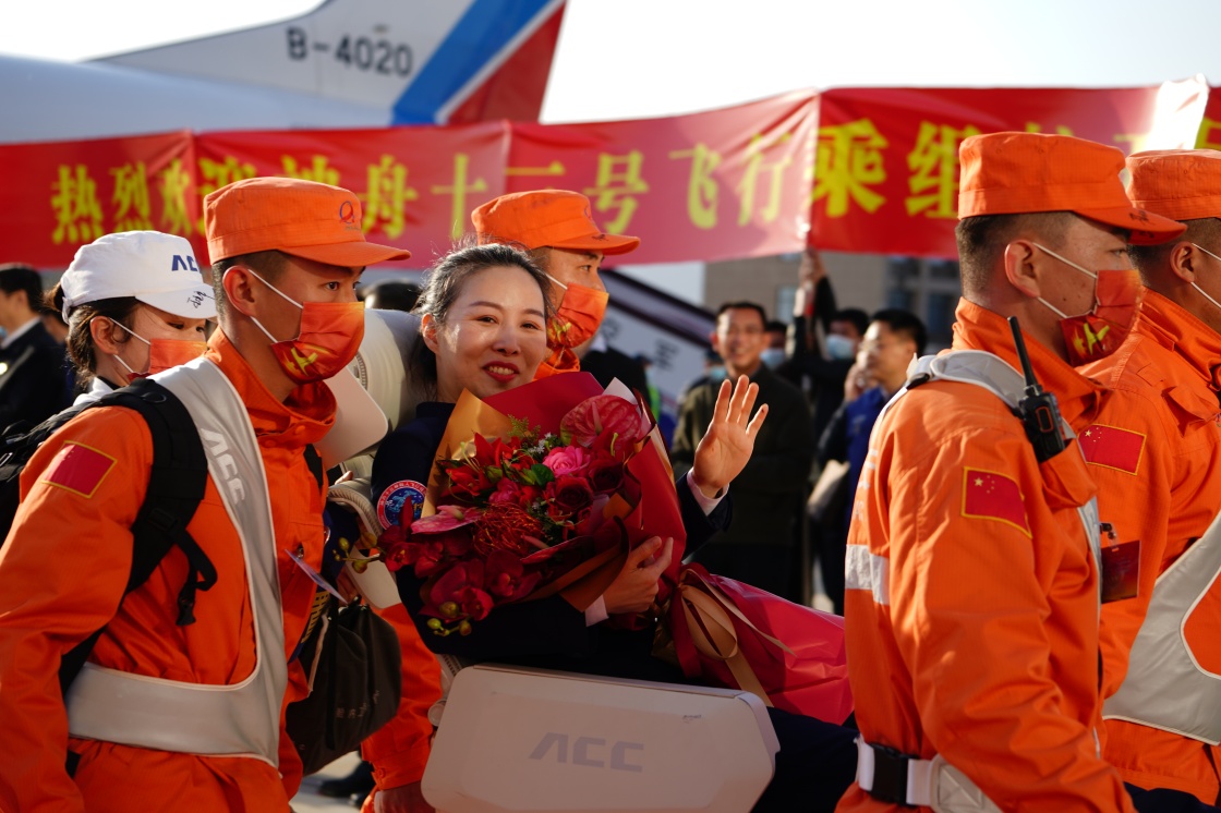 新華社北京4月16日電(記者郭明芝、田定宇)據(jù)中國(guó)載人航天工程辦公室消息,圓滿完成神舟十三號(hào)載人飛行任務(wù)的航天員翟志剛、王亞平、葉光富,于2022年4月16日下午乘坐任務(wù)飛機(jī)平安抵達(dá)北京??臻g站階段飛行任務(wù)總指揮部領(lǐng)導(dǎo)和成員到機(jī)場(chǎng)迎接。