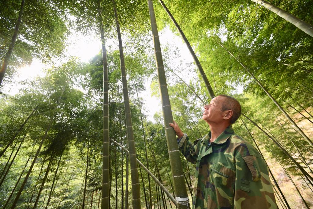 福建三明永安市洪田鎮(zhèn)湍石村村民在查看毛竹長勢(2020年11月26日攝)。新華社記者姜克紅攝