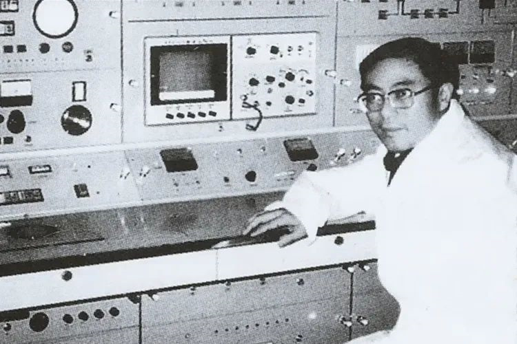 任新民在長(zhǎng)征三號(hào)火箭發(fā)射通信衛(wèi)星任務(wù)現(xiàn)場(chǎng)