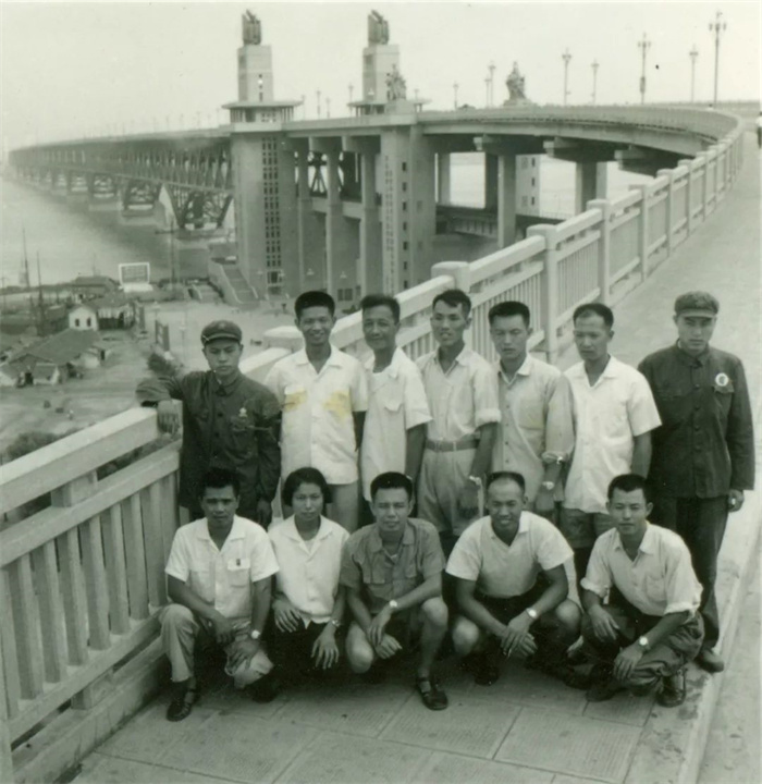 1970年7月 黃緯祿(二排左三)和同事在南京長(zhǎng)江大橋作試驗(yàn)期間合影
