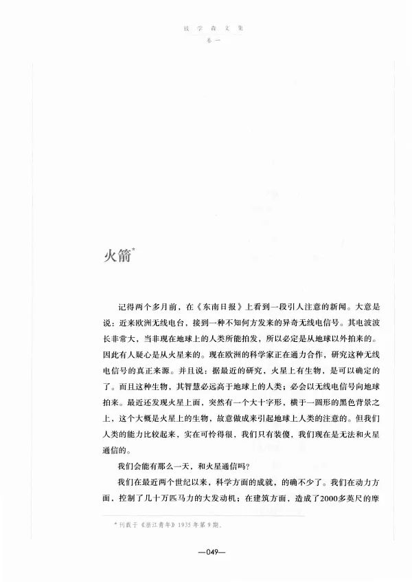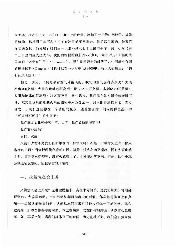 《火箭》全文出自《錢學(xué)森文集(卷一)》(國(guó)防工業(yè)出版社2012年版)