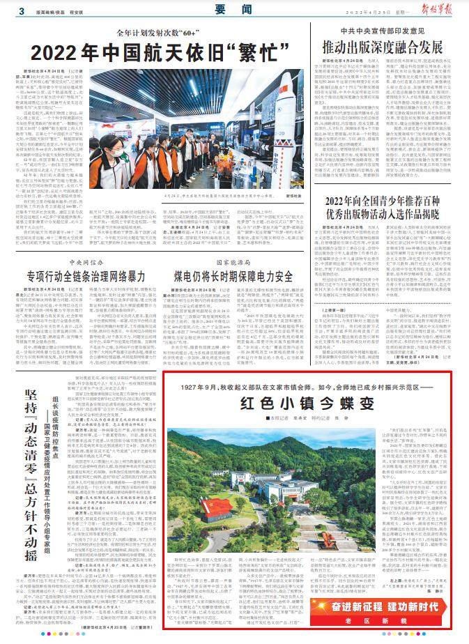 春日陽光下,文家市鎮(zhèn)秋收起義廣場上,“光輝起點”大型雕塑熠熠生輝。如今的文家市鎮(zhèn),已成為遠(yuǎn)近聞名的“億元小鎮(zhèn)”、鄉(xiāng)村振興示范區(qū)。