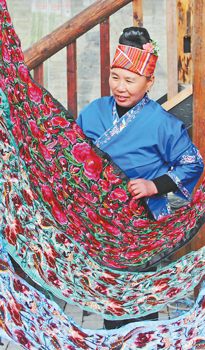 貴州省黔東南苗族侗族自治州施秉縣一家苗繡坊里,繡娘在檢查訂單苗繡產(chǎn)品。當?shù)匾劳蟹沁z文化資源,發(fā)展苗繡產(chǎn)業(yè),帶動村民就近就業(yè)增收,助推鄉(xiāng)村振興。邰勝智攝(影像中國)