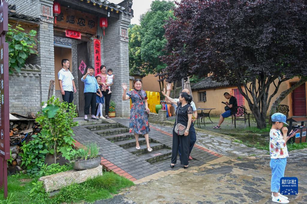 游客在新縣田鋪大塆一農(nóng)家樂就餐后離開(資料照片)。新華社發(fā)