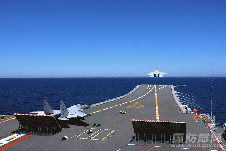 殲-15艦載機在海軍山東艦上進行飛行訓練。李剛攝?