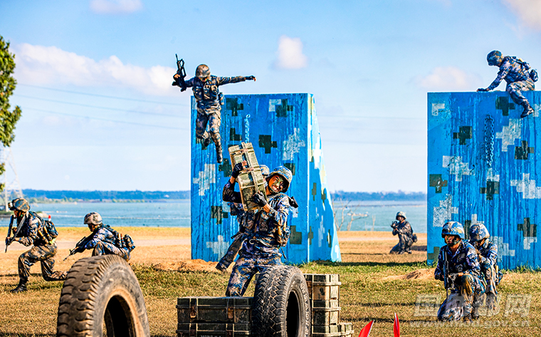 海軍陸戰(zhàn)隊隊員進行極限戰(zhàn)斗體能演練。王瑋攝?