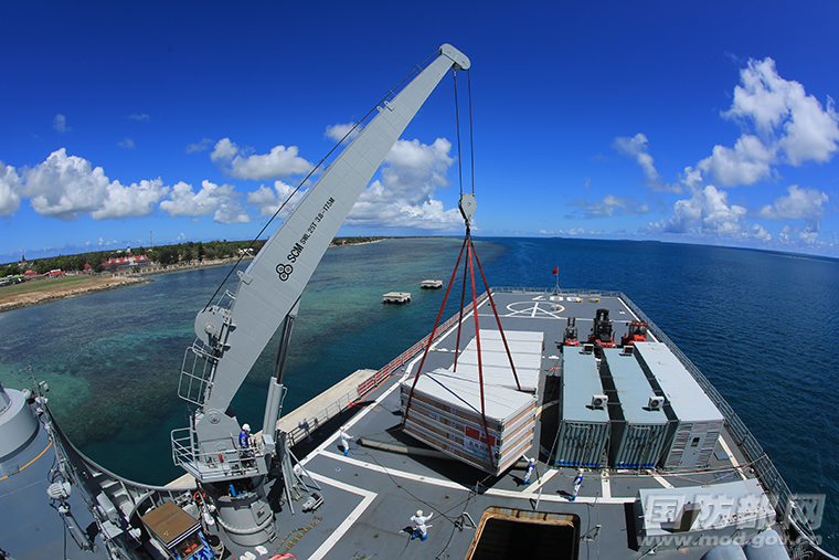 海軍船塢登陸艦五指山艦和綜合補給艦查干湖艦赴湯加運送救援物資。薛成清攝
