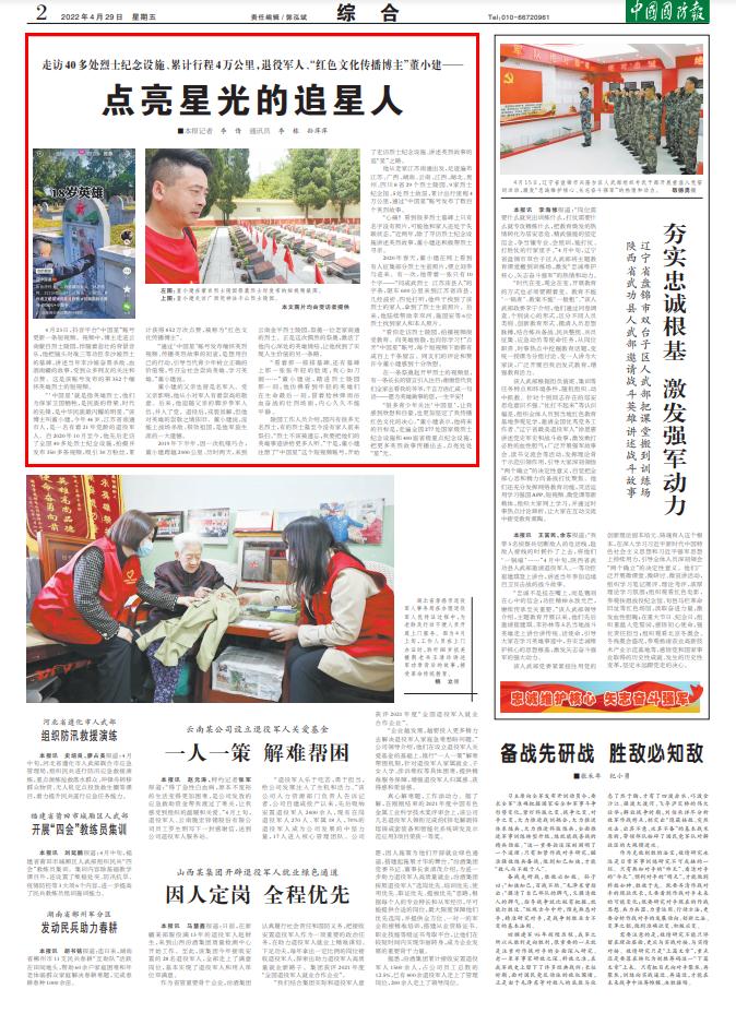 “很多青少年關注‘中國星’,讓我感到欣慰和自豪,也更加堅定了我傳播紅色文化的決心?!倍〗ū硎荆麑淼哪繕耸?,走遍全國277處國家級烈士紀念設施和400座省級重點紀念設施,把更多英烈故事傳播出去,點亮處處“星”光。