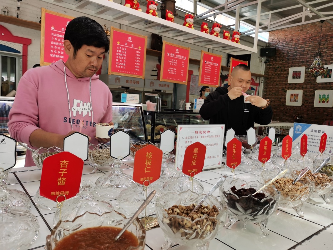 “慕名已久,終于嘗到了,冰激凌很有特色,回去一定推薦朋友來吃?!睆V東游客劉俊杰抿了一口撒滿果醬和果仁的冰激凌,滿足地說。