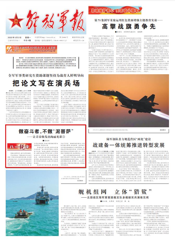 習(xí)主席指出,“要做起而行之的行動(dòng)者、不做坐而論道的清談客,當(dāng)攻堅(jiān)克難的奮斗者、不當(dāng)怕見(jiàn)風(fēng)雨的泥菩薩,在摸爬滾打中增長(zhǎng)才干,在層層歷練中積累經(jīng)驗(yàn)?!必瀼芈鋵?shí)這一重要講話精神,廣大青年應(yīng)弘揚(yáng)使命在肩、奮斗有我的精神,積極為強(qiáng)國(guó)強(qiáng)軍事業(yè)貢獻(xiàn)青春、智慧和力量。