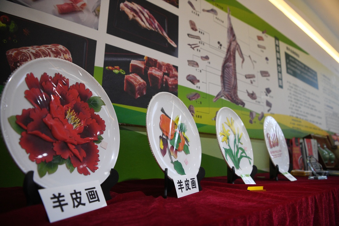 鹽池灘羊產(chǎn)業(yè)發(fā)展集團(tuán)展出的羊皮畫(5月2日攝)。
