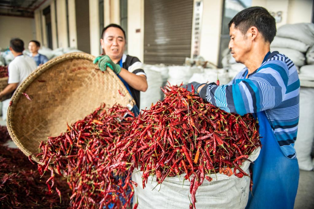 “中國辣椒城為大家創(chuàng)造了發(fā)展的平臺。”吳應波是新舟鎮(zhèn)最大的辣椒種植戶,做辣椒生意十幾年,在貴州、新疆、甘肅多地均有自己的種植基地,2020年成立了自己的公司和農(nóng)民專業(yè)合作社,種出來的辣椒運往中國辣椒城進行加工,再銷往全國各地。多年來,帶動數(shù)千名群眾增收。