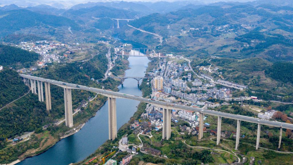 貴州省烏江特大橋(2021年11月24日攝,無人機照片)。新華社記者歐東衢攝