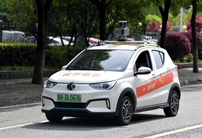 武漢首臺智能5G城管巡邏車在街頭巡邏。(受訪者供圖)