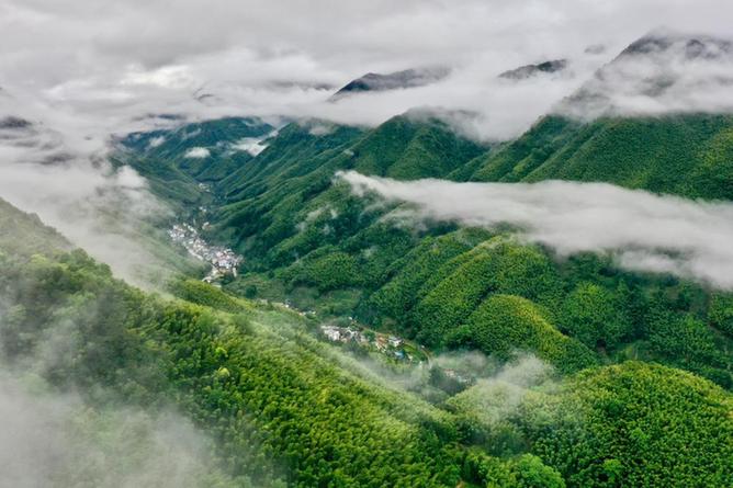 武夷山國家公園桐木村附近群山疊翠,云霧繚繞(2021年5月17日攝,無人機(jī)照片)。新華社記者姜克紅攝