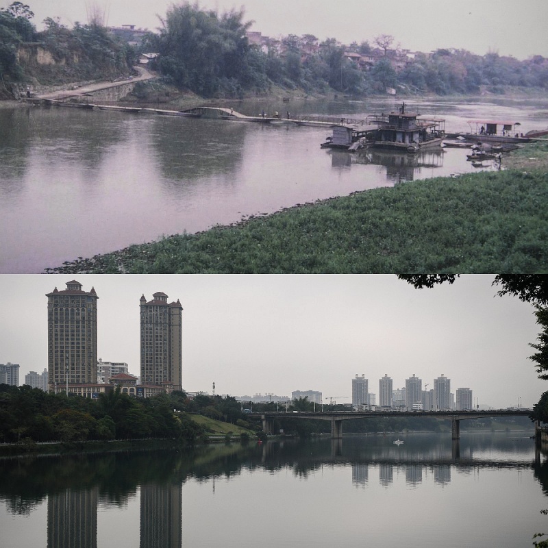 拼版照片:上圖為1990年百色市民在老碼頭賽龍舟(資料圖片,百色市檔案館提供);下圖為2022年5月8日拍攝的百色市老碼頭(新華社記者張愛林?jǐn)z)。新華社發(fā)