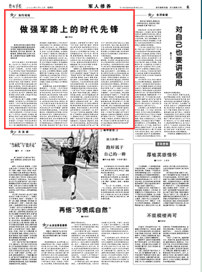 ●軍隊青年要認(rèn)真學(xué)習(xí)貫徹習(xí)主席重要講話精神,繼承發(fā)揚(yáng)優(yōu)良傳統(tǒng),積極投身強(qiáng)國強(qiáng)軍實踐,踔厲奮發(fā)、篤行不怠,埋頭苦干、勇毅前進(jìn),勇做強(qiáng)軍路上的時代先鋒,讓青春年華在奮斗拼搏中煥發(fā)絢麗光彩