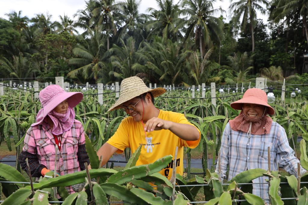 萬寧市長豐鎮(zhèn)七甲村村民在火龍果基地修剪枝條。新華社記者房寬攝