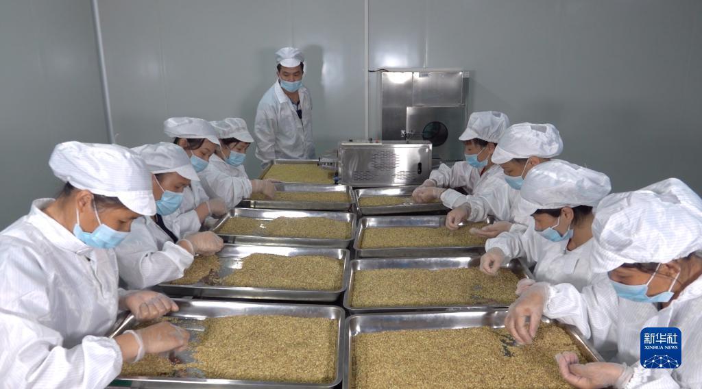 桂林原心達(dá)生物科技有限公司工人在精選槐米(資料照片)。新華社發(fā)