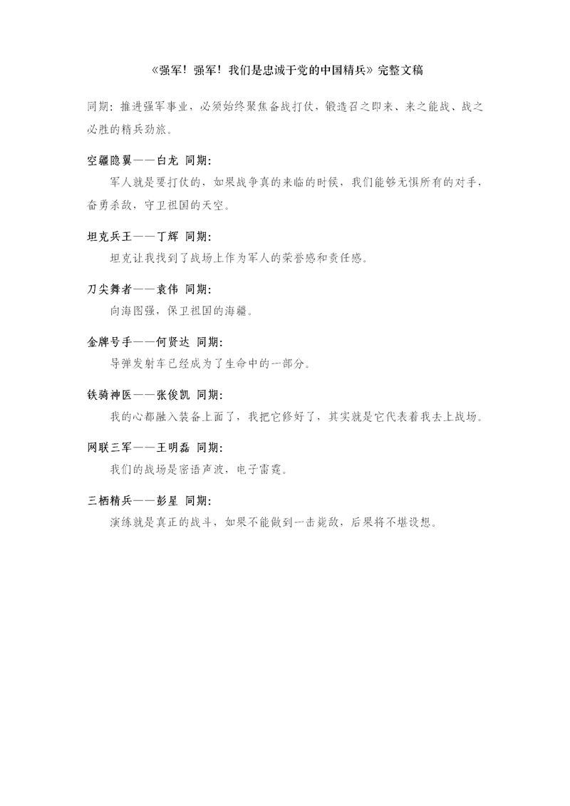 強(qiáng)軍!強(qiáng)軍!我們是忠誠于黨的中國精兵