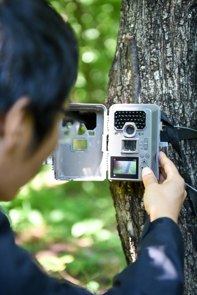 馮利民在東北虎豹國家公園內(nèi)的森林里查看智能紅外相機(2020年7月21日攝)。新華社記者顏麟蘊攝