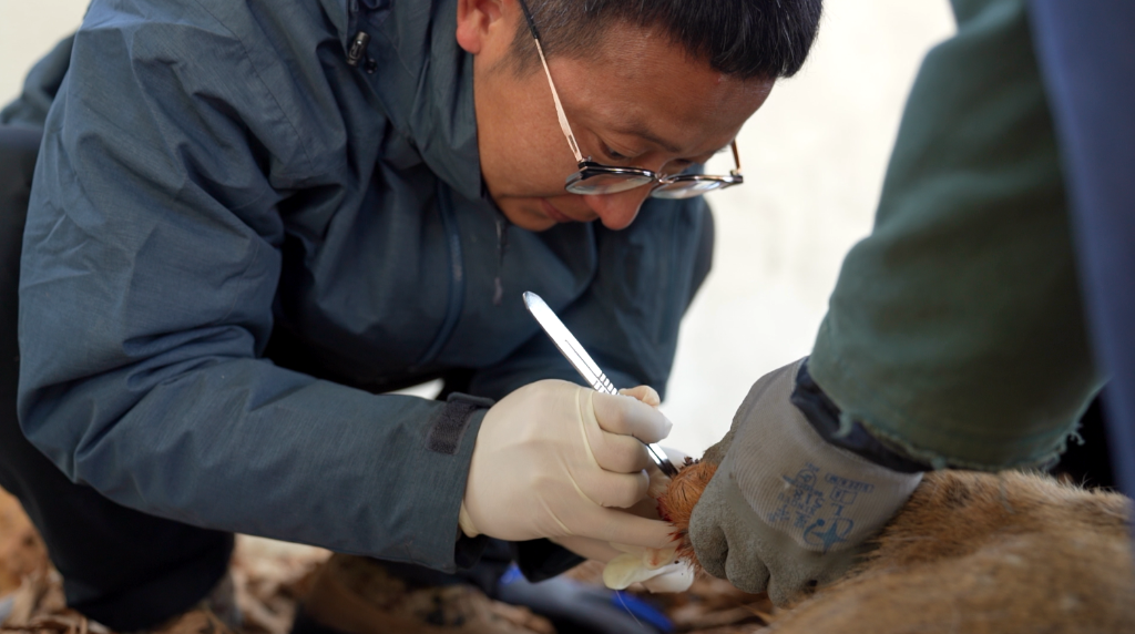 趙巖在救助受傷的野生動物(1月12日攝)。新華社記者司曉帥攝