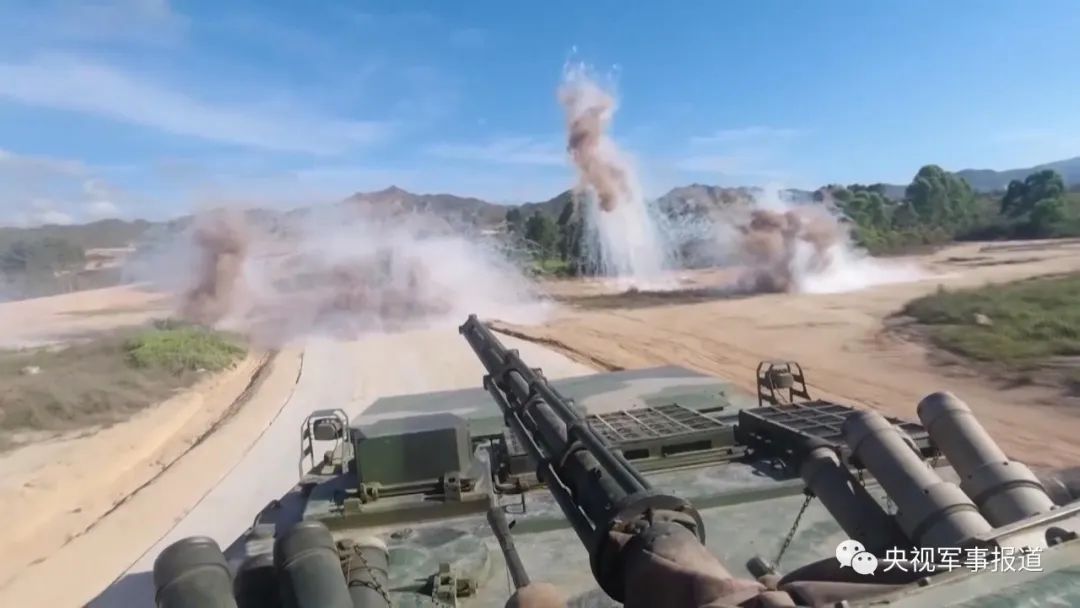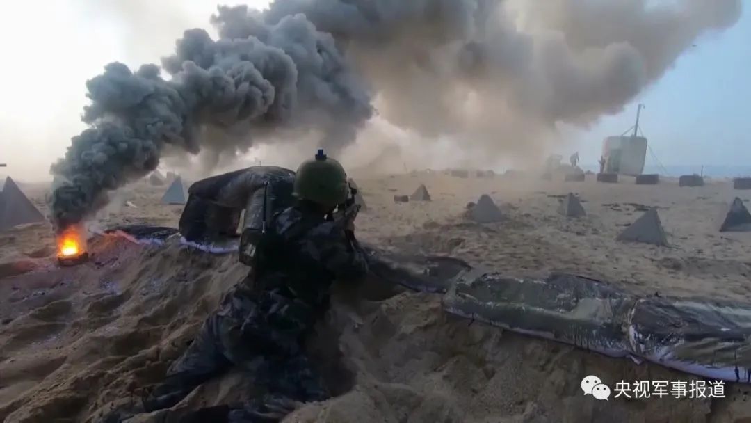 △模擬設(shè)置了灘頭掃殘破障、鞏固擴(kuò)大登陸點、抗敵逆襲等真難實嚴(yán)課目,旨在以實戰(zhàn)化形式檢驗連隊官兵人車協(xié)同作戰(zhàn)水平。