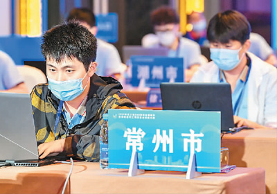 在長三角G60科創(chuàng)走廊城市暨安徽省職工網(wǎng)絡(luò)安全攻防技能大賽現(xiàn)場,選手正進行網(wǎng)絡(luò)攻防對決。袁 兵攝(人民圖片)