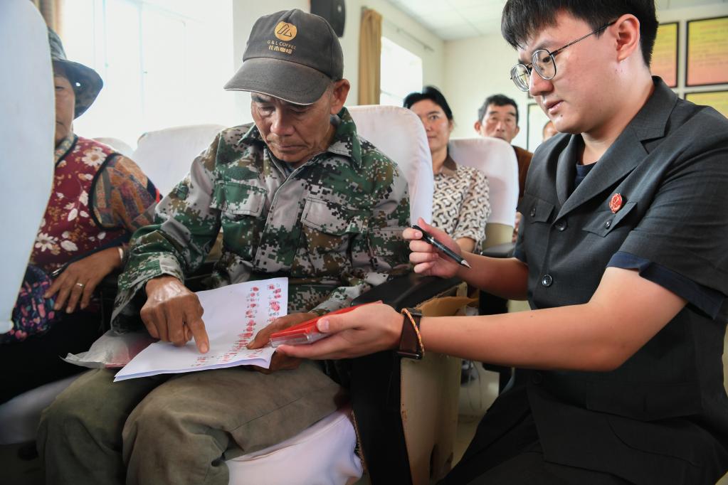 2022年3月28日,因大象遭受損失的農(nóng)戶正在領(lǐng)賠償款。(思茅區(qū)法院供圖)