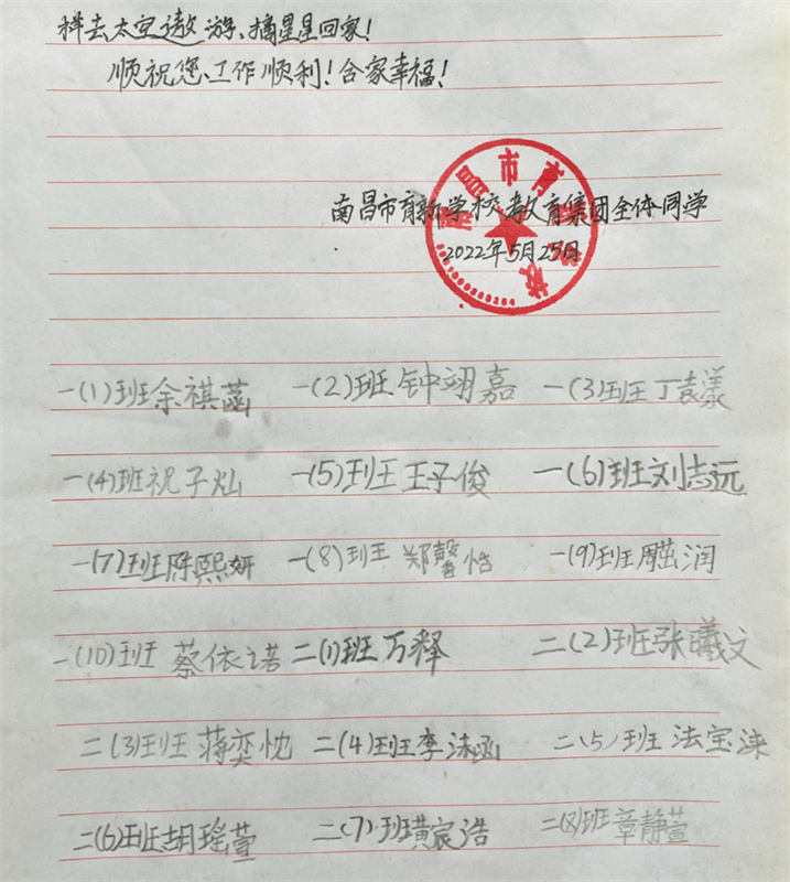 孩子們還以班級為單位由班長代表全班同學(xué)